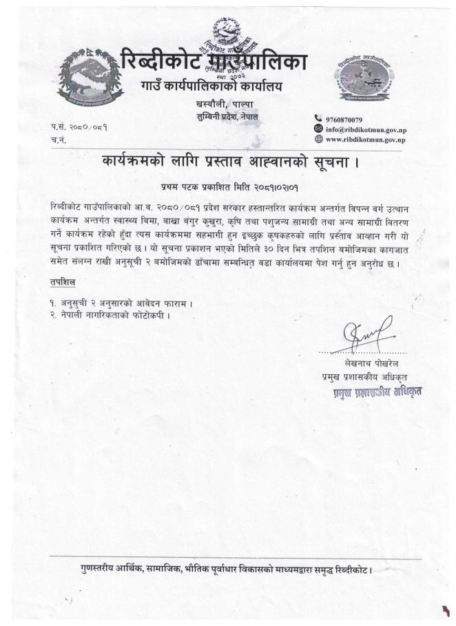 कार्यक्रमको लागि प्रस्ताव आव्हानको सूचना ।