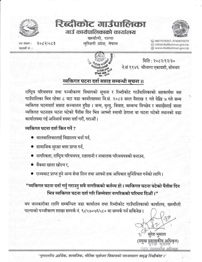» घटना दर्ता सप्ताह सम्वन्धी सूचना