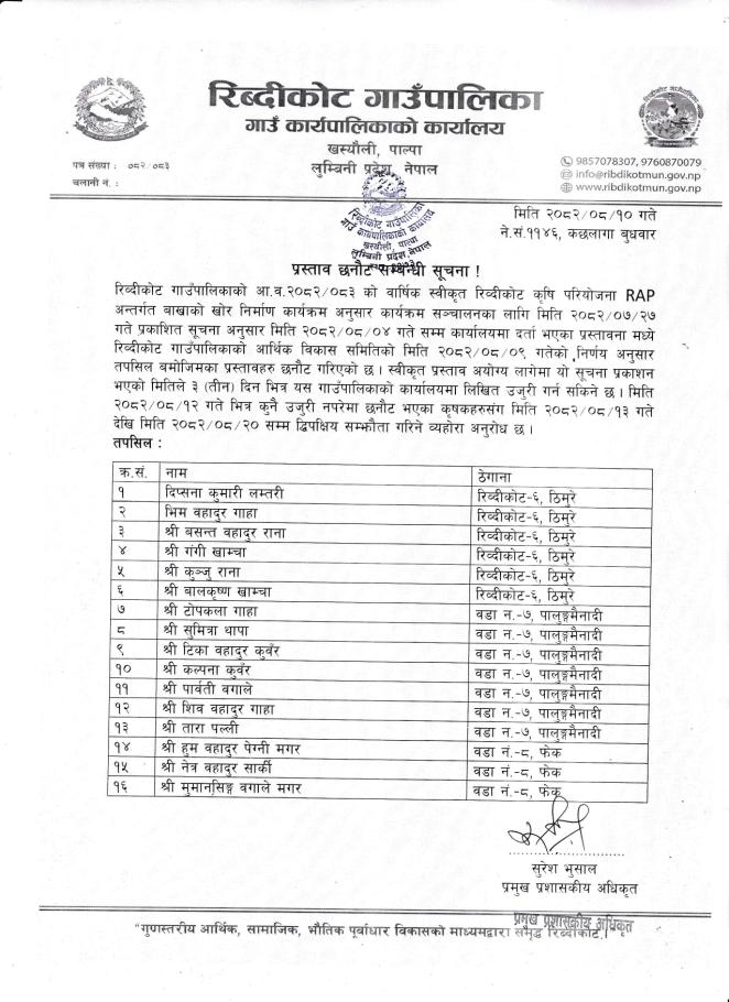 » प्रस्ताव छनौट सम्वन्धी सूचना
