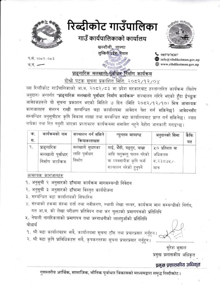 » प्राङ्गगारिक मलखातो पूर्वाधार निर्माण कार्यक्रम सूचना