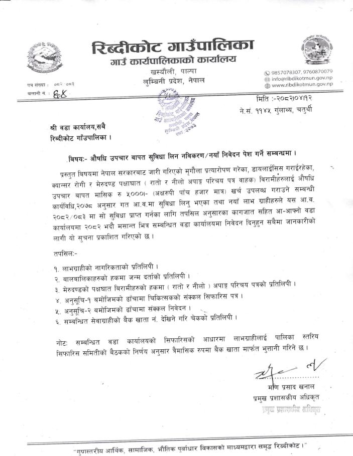 औषधि उपचार सुविधा नविकरण सम्वन्धी सूचना