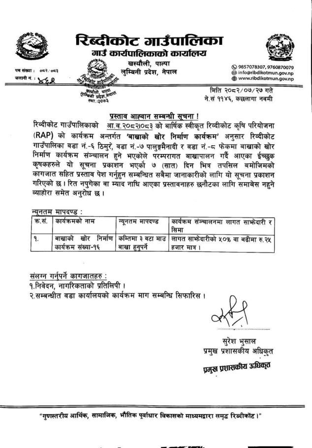 » प्रस्ताव आवाह्रान सम्वन्धी सूचना ( बाख्रा खोर निर्माण )