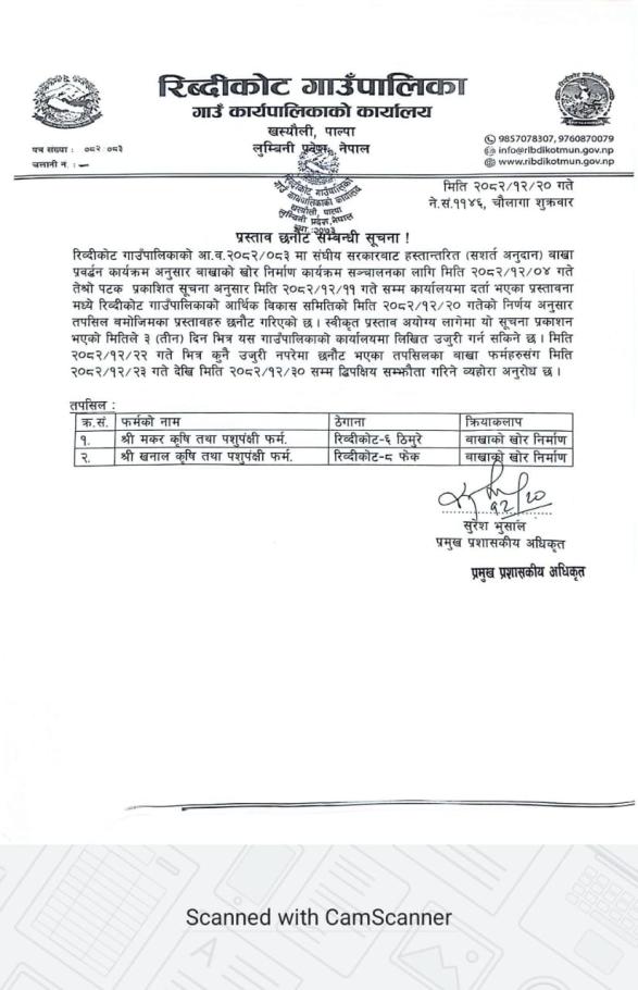 प्रस्ताव छनौट सम्वन्धी सूचना