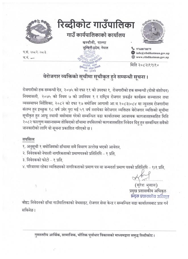 बेरोजगार व्यक्तिको सूचीमा सूचिकृत हुने सम्बन्धी सूचना