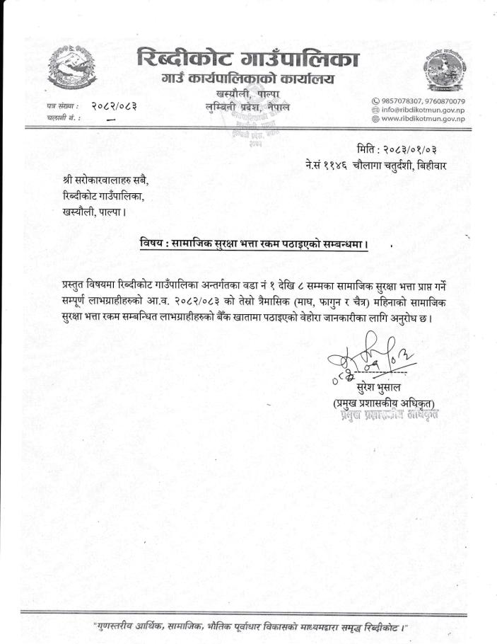 सामाजिक सुरक्ष भत्ता रकम पठाइएको सूचना